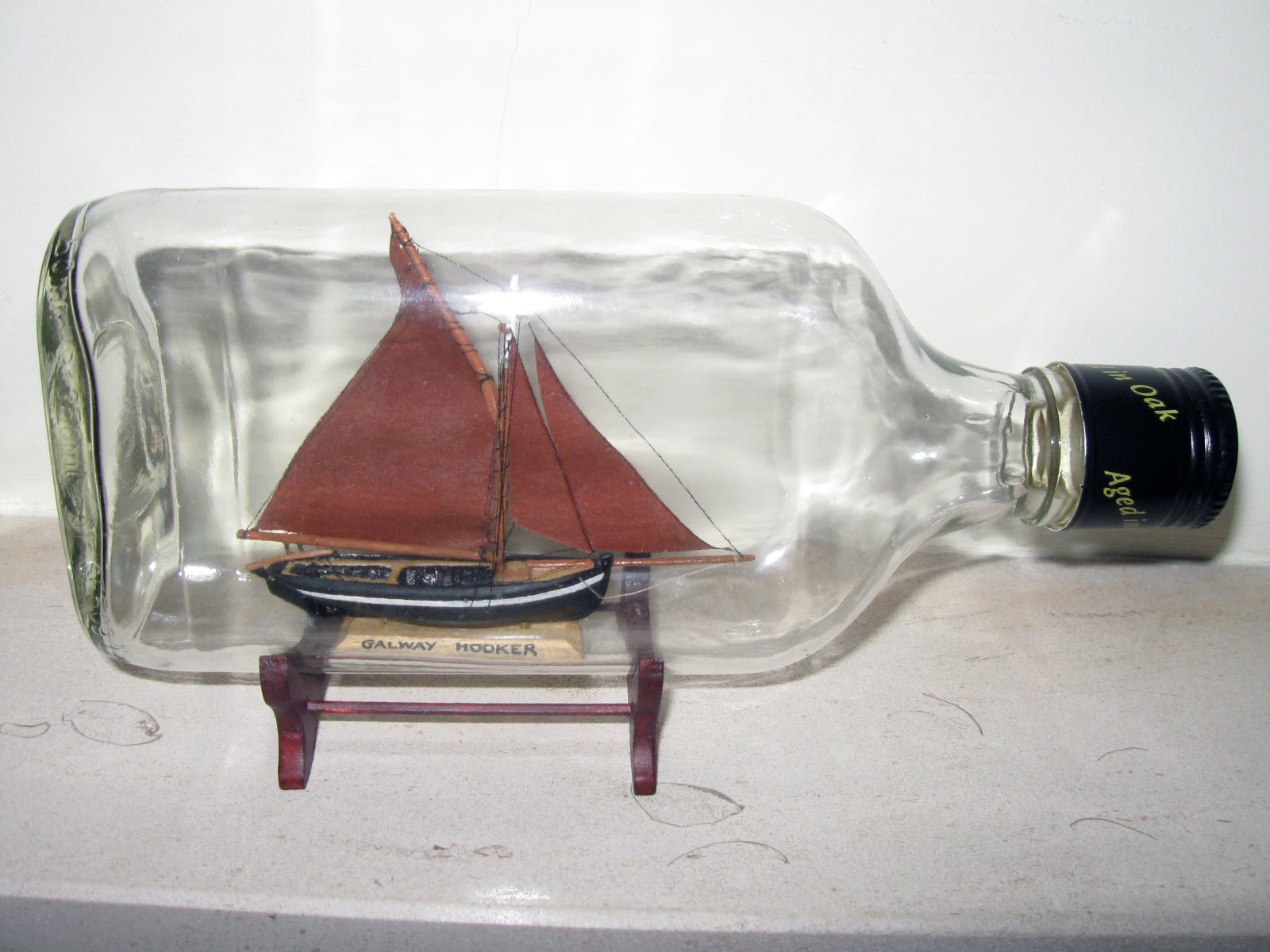 Dedico-lhe este post mostrando uma bela prenda que ele fez e me ofereceu. Trata-se de um Galway Hooker dentro de uma garrafa.