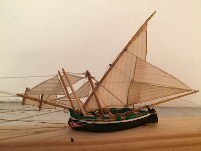 A French colleague, Bertrand Meunier, ship in bottle miniaturist, asked me data about Muleta of Seixal and Barreiro, fishing in the "mér of Muleta", between Cascais and Guincho (Portugal). I recommended him the fabulous study by Professor Manuel Leitão and you can see his work ...beautiful!